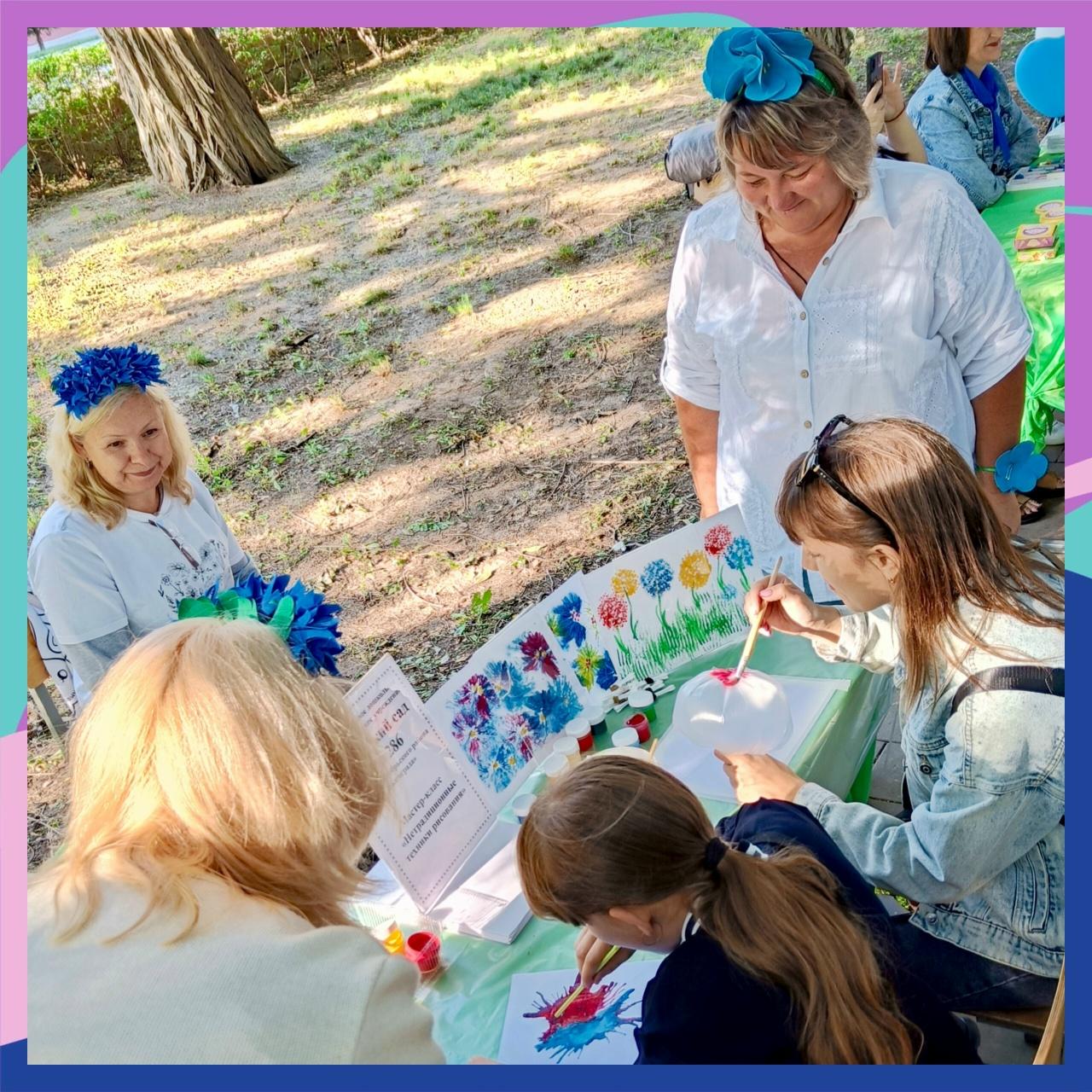 Наши педагоги проводили мастер-класс по нетрадиционным техникам рисования (кляксография, рисование ватными палочками, пластиковой вилкой).
