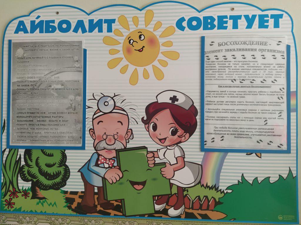 Проводится анализ состояния здоровья воспитанников, регулярно оформляются статистические отчеты о состоянии их здоровья. В период повышенной заболеваемости ОРВИ и гриппом проводится (по согласованию со службами поликлиники и сан.эпидем. службы ) комплекс специальных профилактических мероприятий: проф.прививки от гриппа; соблюдение санитарно-гигиенического режима; фитоциндотерапия (лук, чеснок); витаминизация 3-х блюд (витамин С, отвар шиповника). В системе проводятся как традиционные (зарядки, прогулки на свежем воздухе, физ. минутки), так и нетрадиционные формы оздоровления детей: полоскание горла; точечный массаж; дыхательная гимнастика; гимнастика после дневного сна; воздушные ванны; ходьба по массажным коврикам; гимнастика для глаз. По графику проводятся профосмотры детей врачами-специалистами. Дети с выявленной патологией направляются на дальнейшее лечение.
