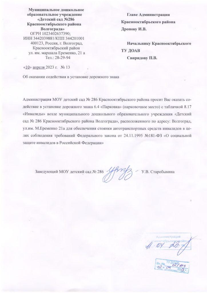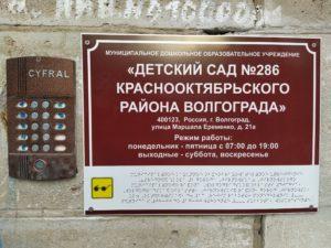 Муниципальное дошкольное образовательное учреждение «Детский сад № 286 Краснооктябрьского района Волгограда» расположено в отдельно стоящем здании, построенному по типовому проекту.